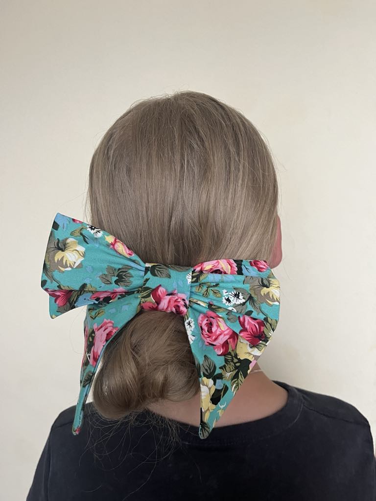 Kokardka do włosów wykonana jest z 100% bawełny,